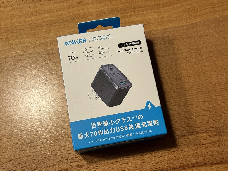 本記事では「【Anker Nano Charger (70W, 3 Ports) レビュー】超小型で高出力!3台同時充電も快適な万能充電器」について書きました。