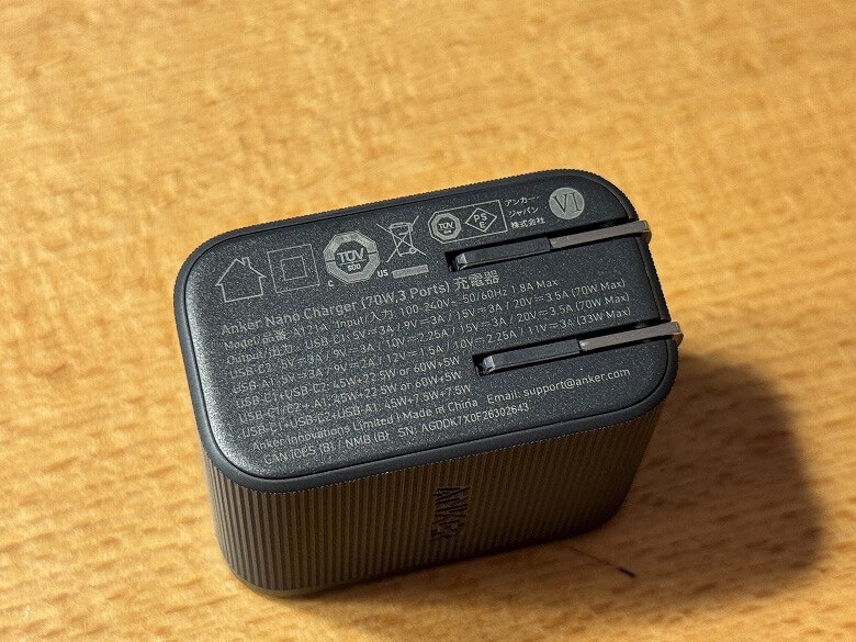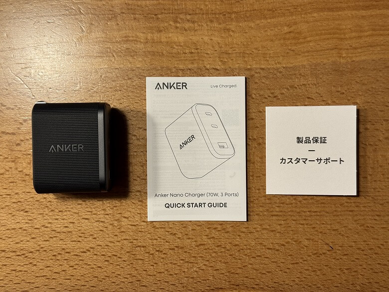 「Anker Nano Charger (70W, 3 Ports) 」は、コンパクトさ・高出力・複数ポートという三拍子が揃った、非常にバランスの良い充電器でした。