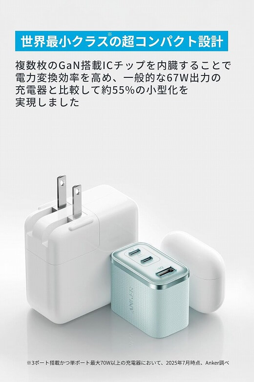 そんな中で注目を集めているのが、Ankerの「Nano Charger (70W, 3 Ports)」。