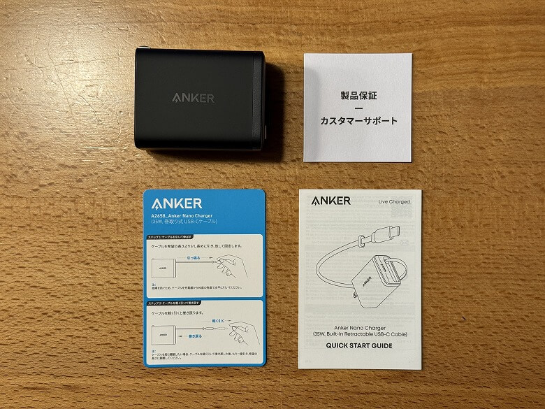 Anker Nano Charger (35W, 巻取り式 USB-Cケーブル)の同梱物
