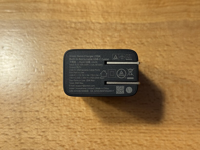 - Anker Nano Charger (35W, 巻取り式 USB-Cケーブル)本体