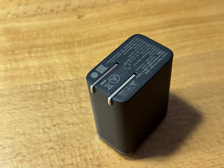 コンパクト設計で持ち運びしやすい充電器です。