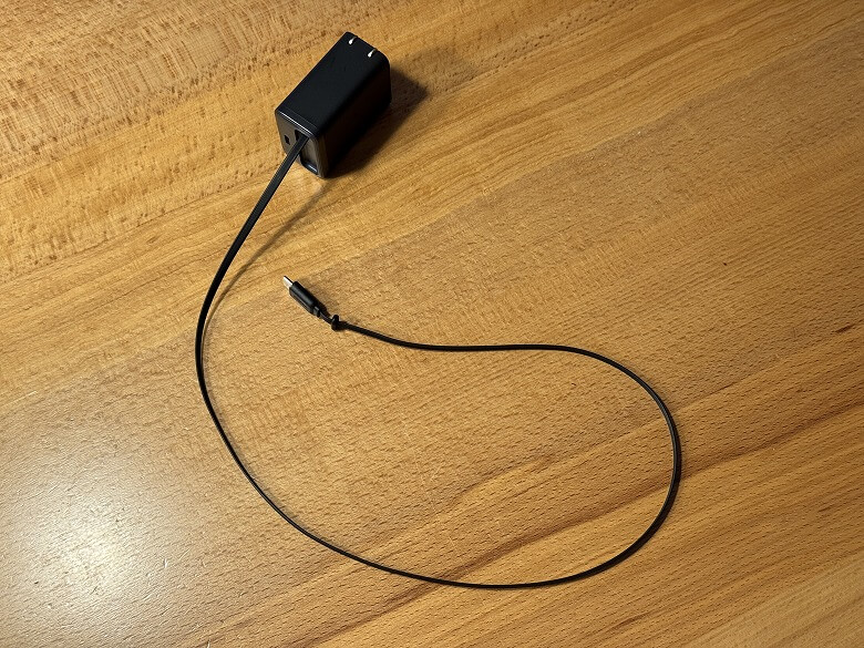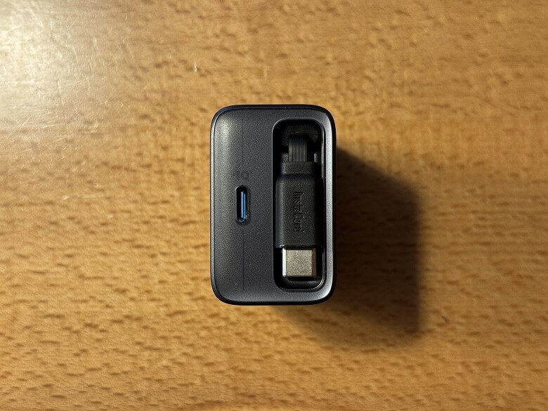 この充電器の最大の特徴は、本体に巻取り式のUSB-Cケーブルを内蔵している点。