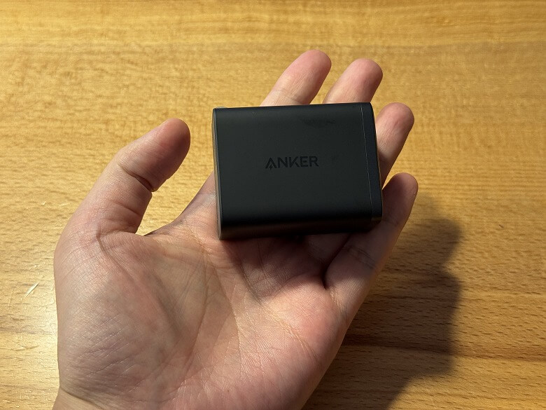 一般的に高性能な充電器は本体が大きくなりがちですが、このモデルは手のひらサイズながらスマホやタブレットはもちろん、ノートPCまでしっかり急速充電に対応しています。