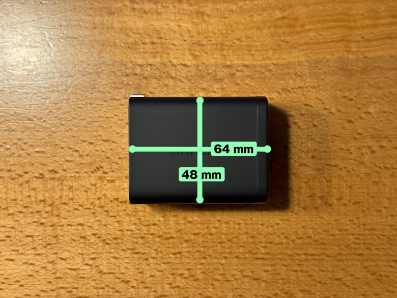 「Anker Nano Charger (35W, 巻取り式 USB-Cケーブル)」のサイズは48 × 64 mmです。