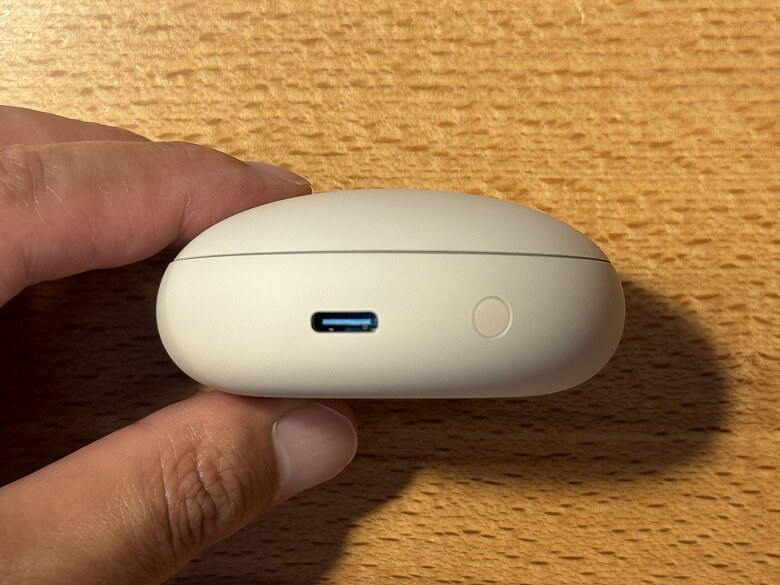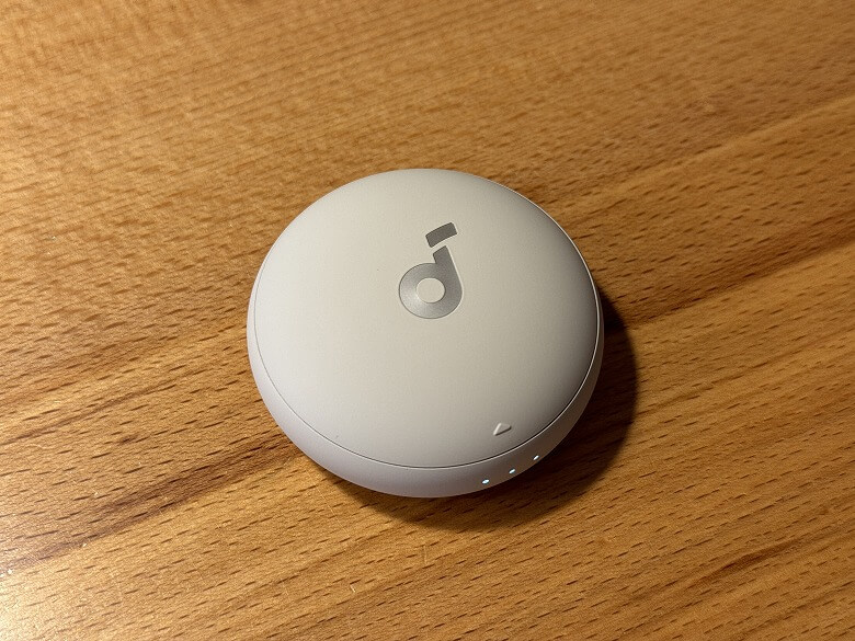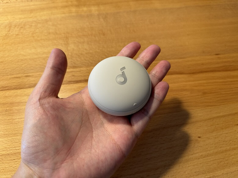 充電ケースの外装はベージュで統一されており、フタにはSoundcoreのロゴのみとシンプルなデザインです。