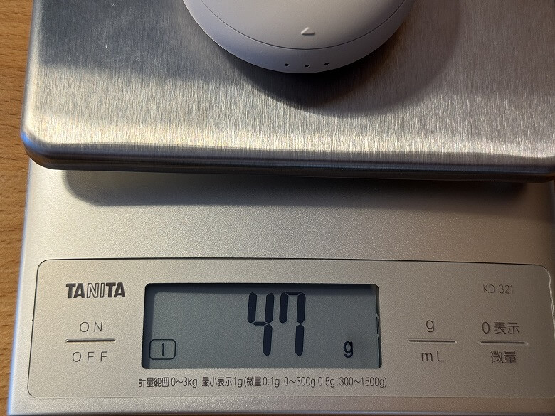 充電ケースの重さは47 g。