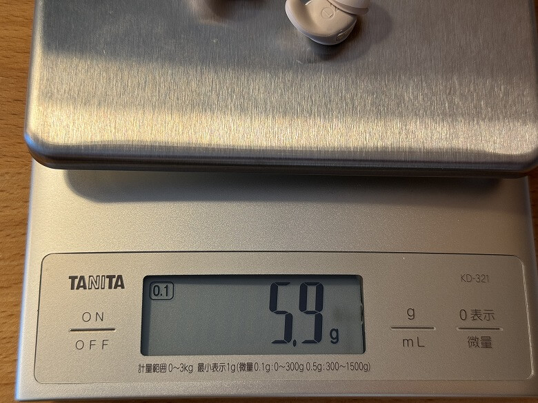 イヤホンはペアで5.9 gです(片方2.95 g)。