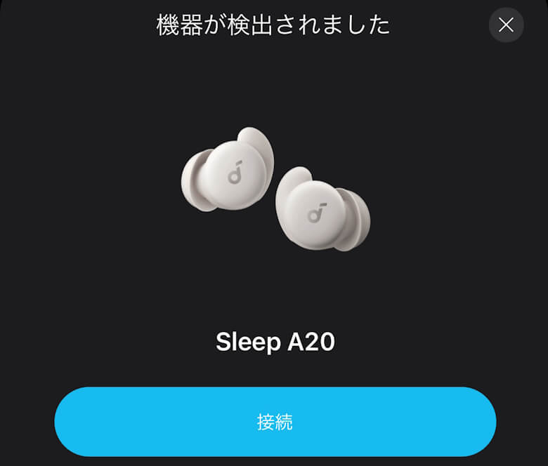 アプリを起動しイヤホンに接続すると、デバイスが検出されます。