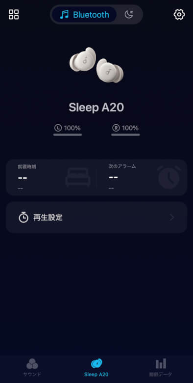 ホーム画面ではBluetoothモードと睡眠モードを切り替えられます。
