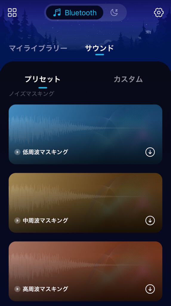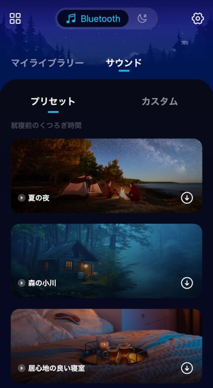 マイライブラリーでは睡眠サウンドを管理できます。