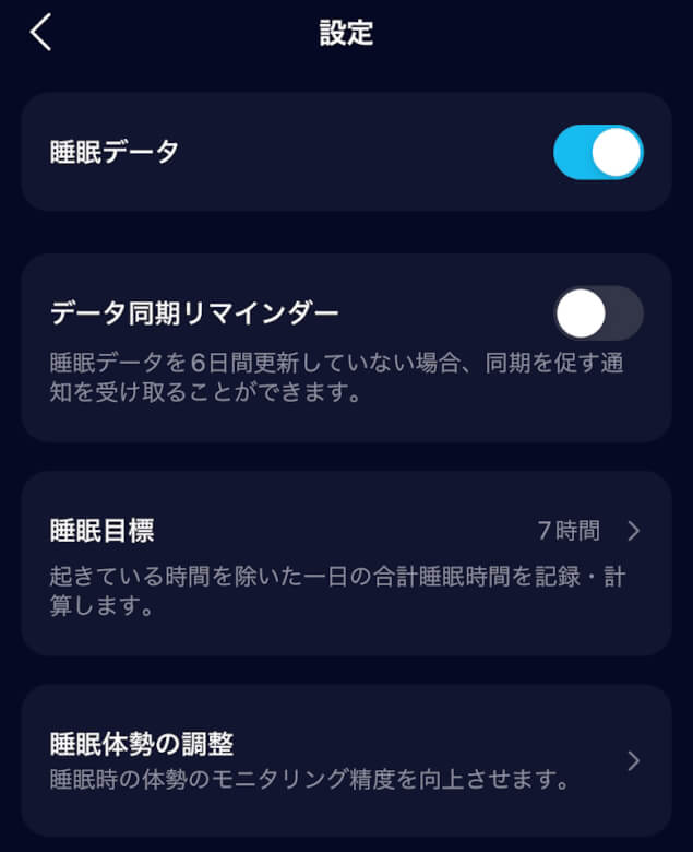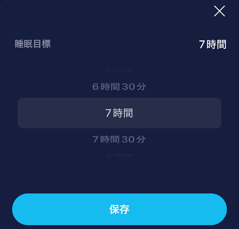 設定では睡眠目標の時間を変更できます。