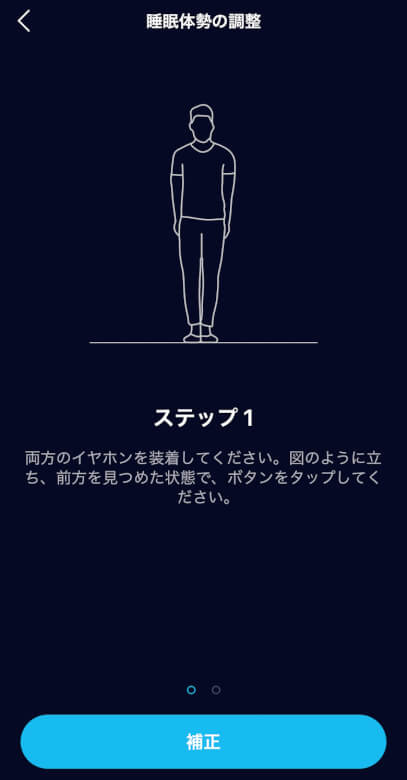 睡眠体勢の調整は画面の指示に従って補正します。