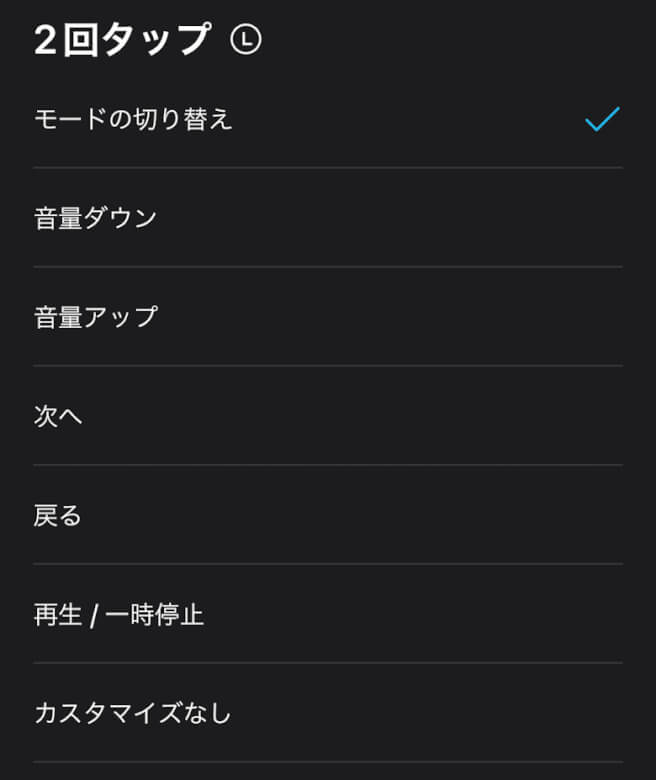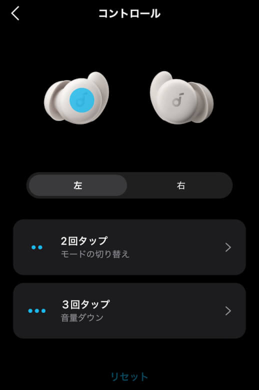 コントロールではタップ時の動作を確認・変更できます。