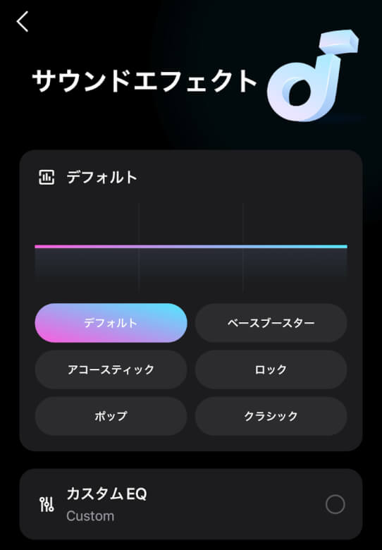 サウンドエフェクトではプリセットやカスタムEQを設定できます。