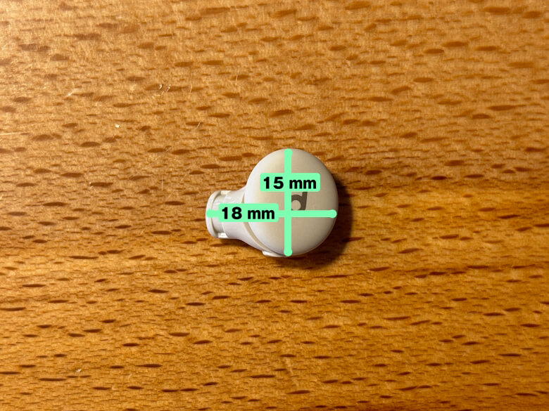イヤホンの全長は15 mm、横幅は18 mmです。