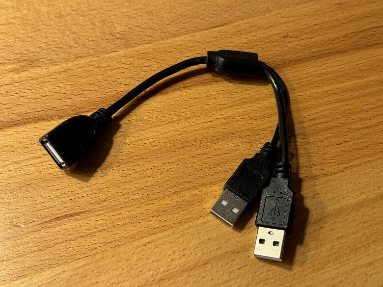 USB Type-Aの入力を2つにわけるケーブルも付属しています。