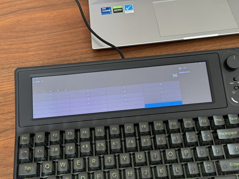 上部に搭載されたディスプレイには画像はもちろん、動画再生や電卓などのソフトも動かせるのでキーボードから手を離さず操作できます。