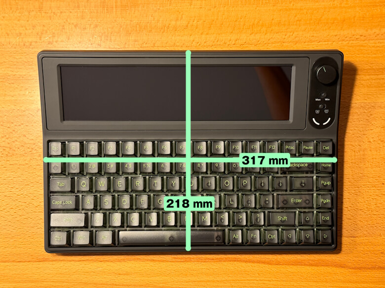 「AJAZZ AKP846 ディスプレイメカニカルキーボード」のサイズは218 × 317 mmです。