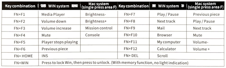 Fnキーとの組み合わせ一覧表は以下をご参考ください。