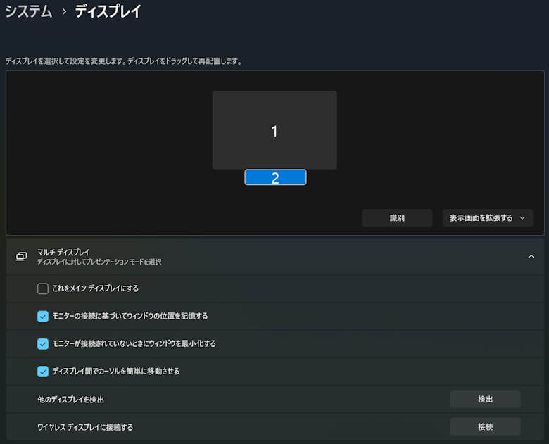 ディスプレイを認識・設定することで位置や表示内容を調整できます。