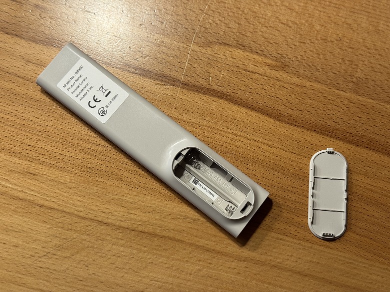 リモコン用の単4電池が2本付属しています。