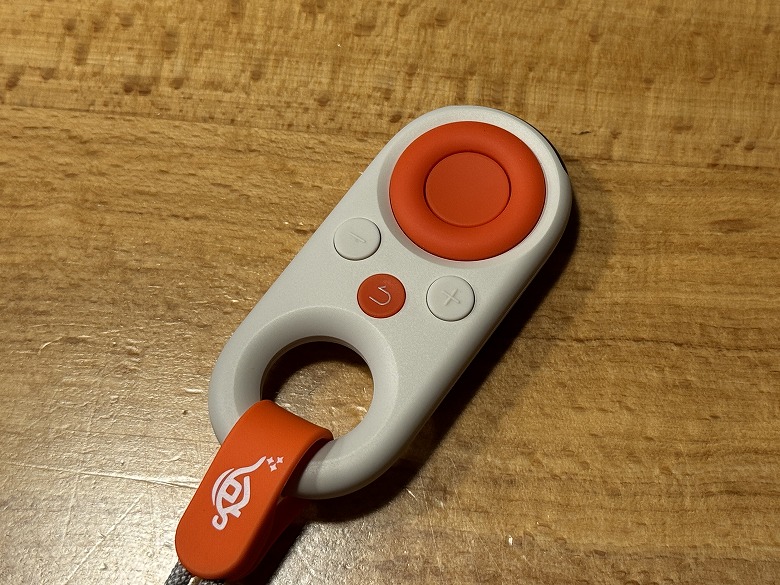 ストラップ付きのミニリモコンは持ち運びに便利です。