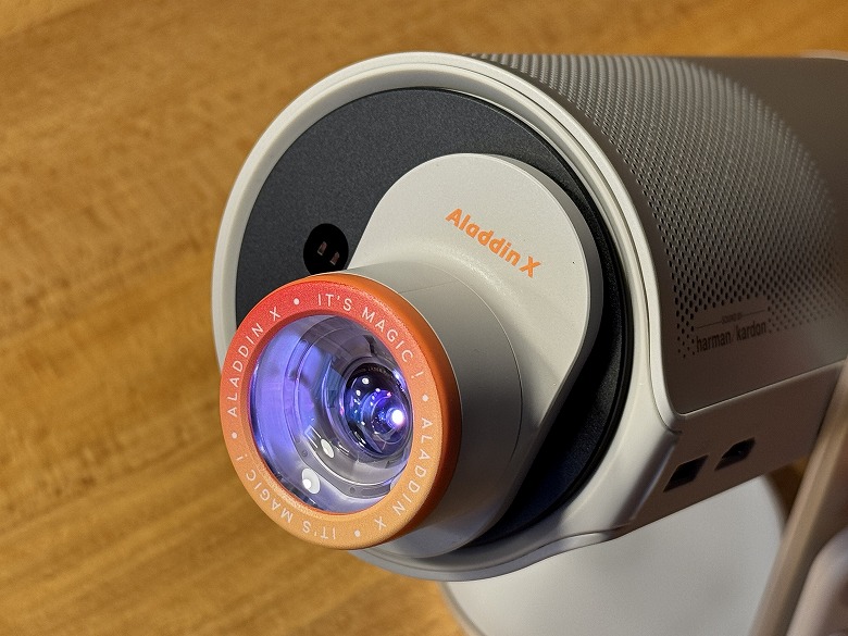 「Aladdin Poca Laser」はコンパクトなボディに高輝度レーザー光源と多機能を詰め込んだ、持ち運び可能な本格派ポータブルプロジェクターです。