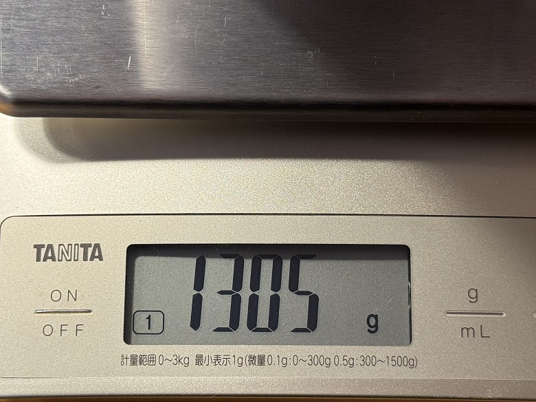 重さは1305 gでした。