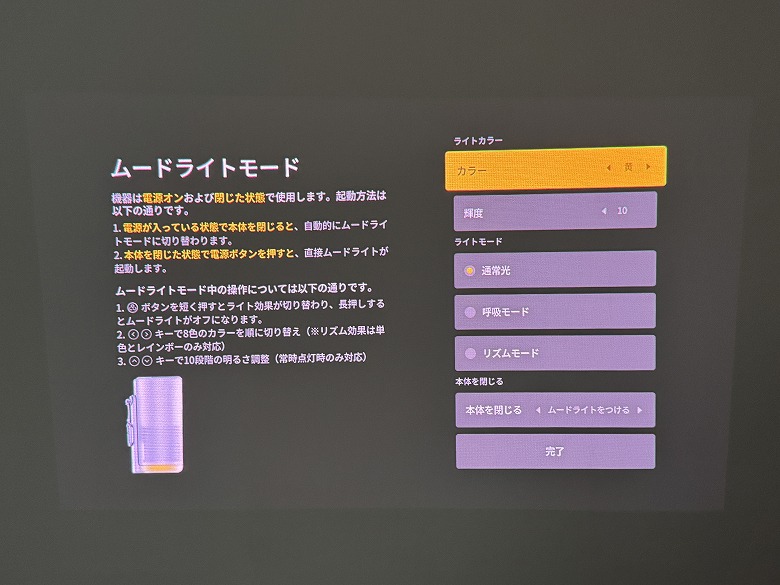 ムードライトの設定は本体でかんたんに行えます。