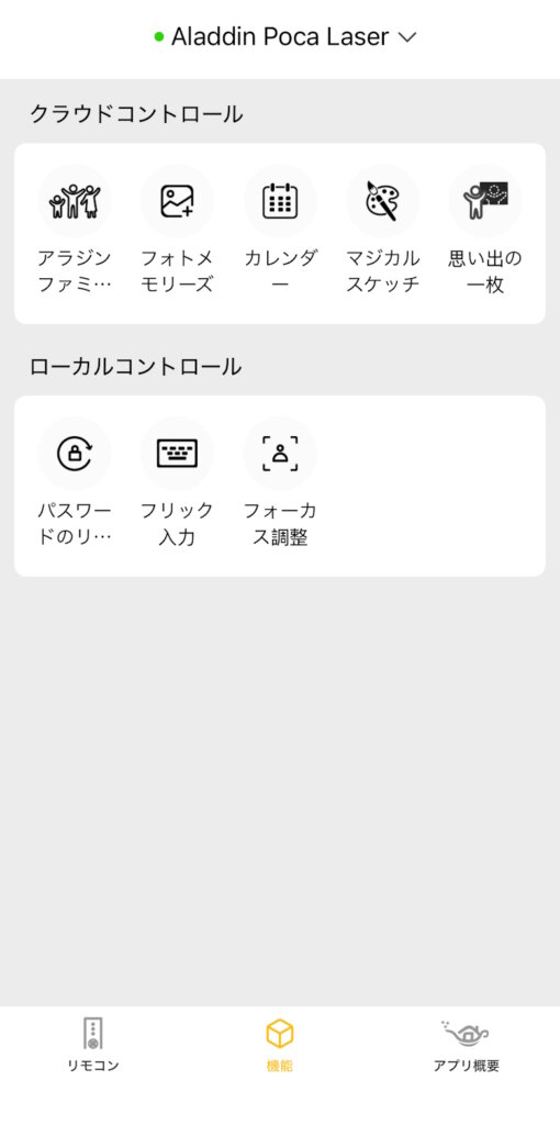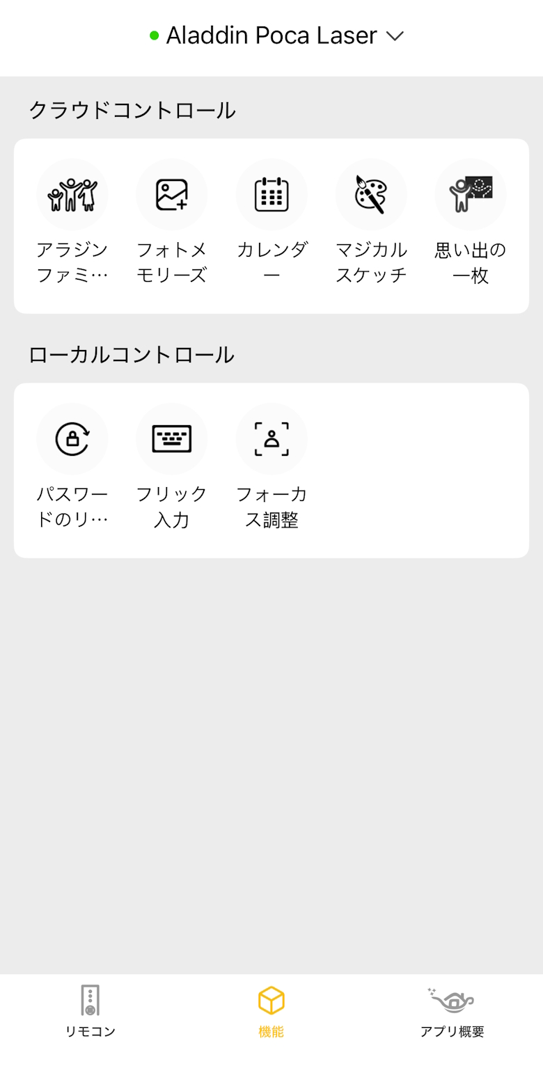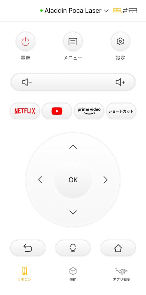 スマホアプリ「Aladdin X」では「Aladdin Poca Laser」に接続し、リモコンとして使うことができます。