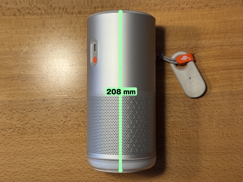 高さは208 mm。