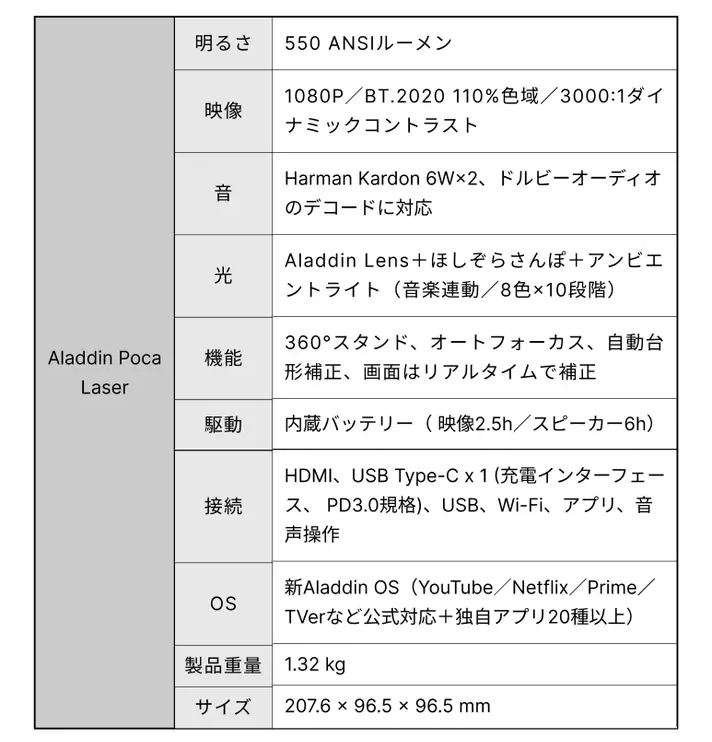 本記事では、「Aladdin Poca Laser」を実際に使ってみて、画質・音質・操作性・携帯性・設置のしやすさなど、さまざまな角度から徹底レビューします。