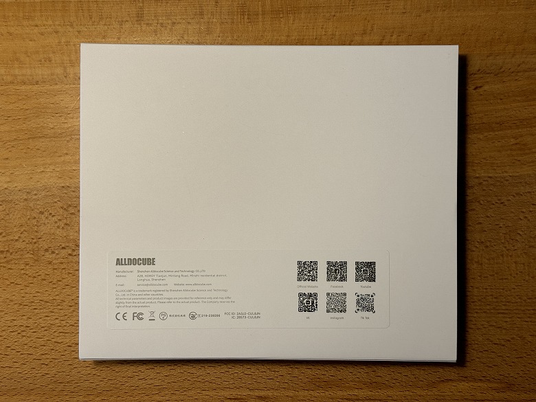 「Alldocube iPlay60 mini Pro」の外箱は、白基調でシンプルなデザインです。