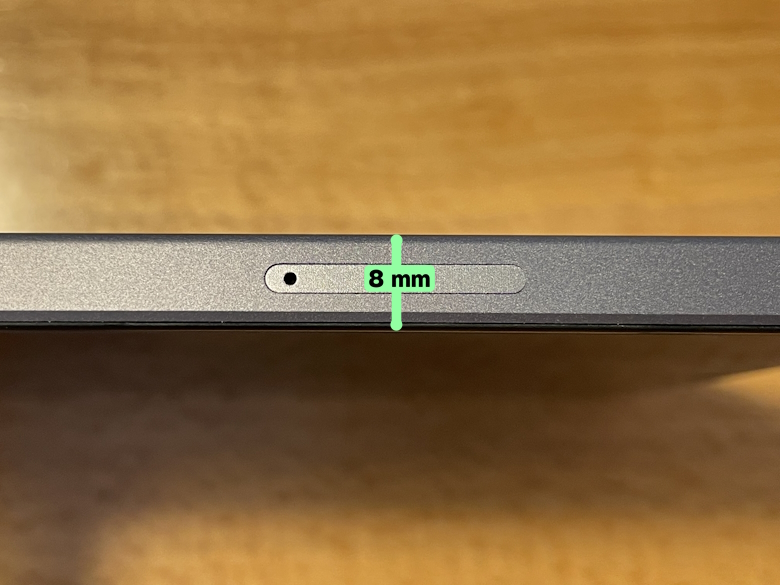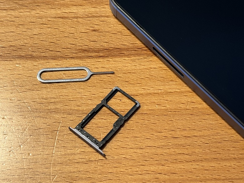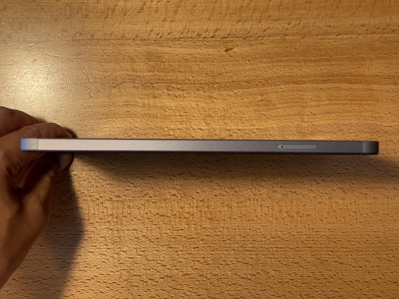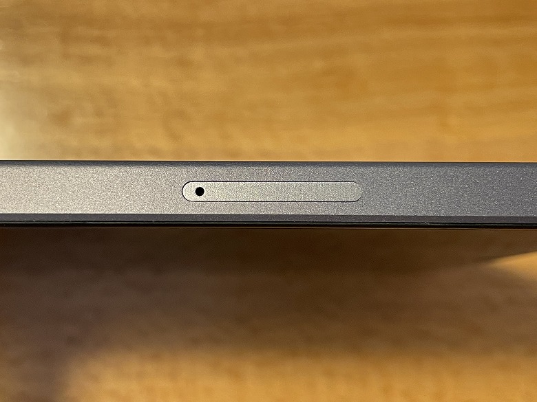 左側面にはSIMトレイがあり、SIM品を使って引き出してSIMカードを入れられます。