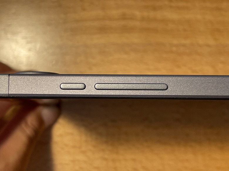 右側面には電源ボタンと音量調整ボタンがあります。