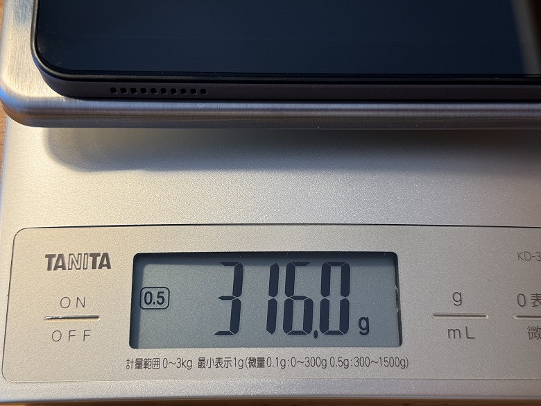 重さは316 gでした。