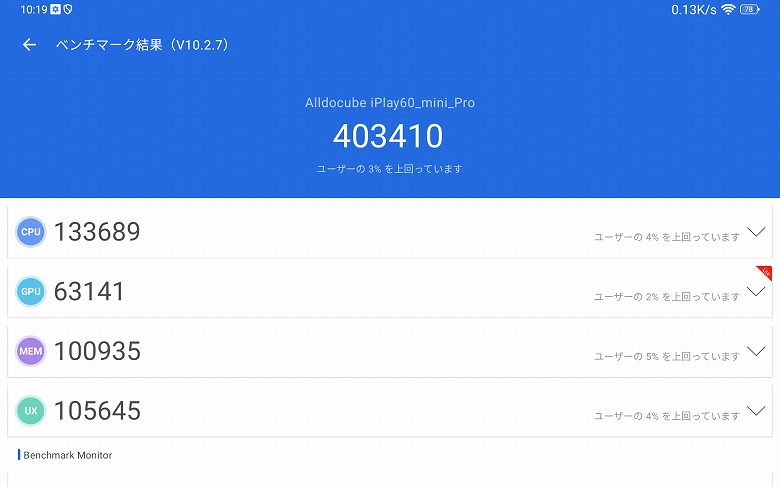 ベンチマーク「AnTuTu」でスコア計測してみました。