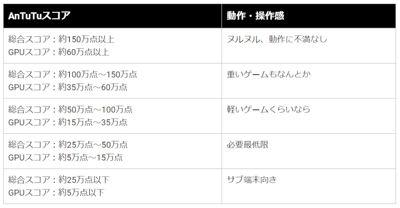 スコアの目安は以下になります。