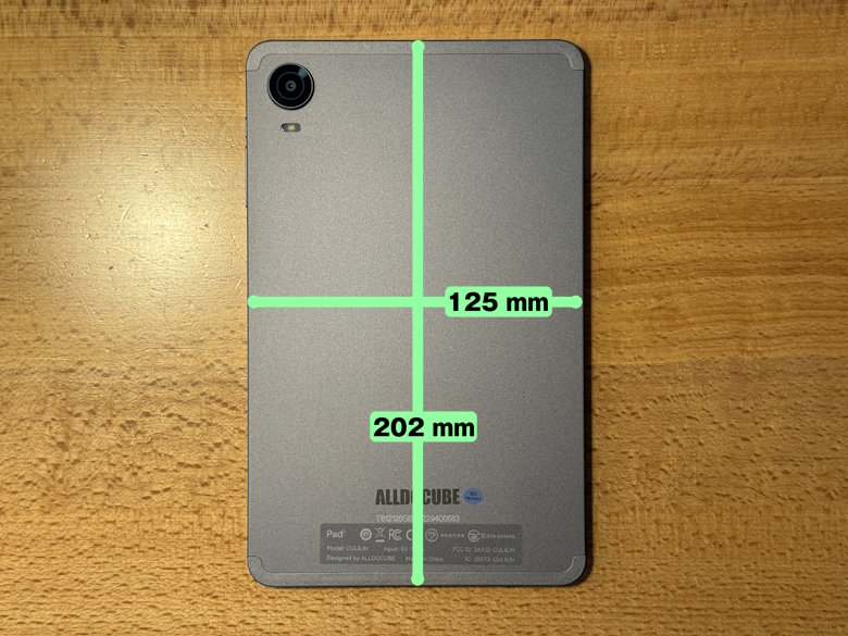 「Alldocube iPlay60 mini Pro」のサイズは202 × 125 mmです。