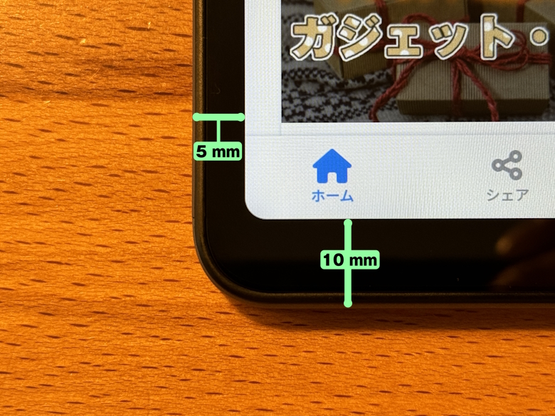 ベゼル幅は左右が5 mm、上下が10 mmです。