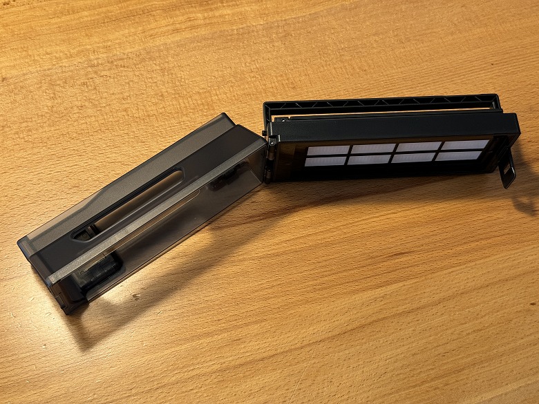 容量330mlのダストボックスの上部のフィルターカバーを外して、各種フィルターをメンテナンスできます。