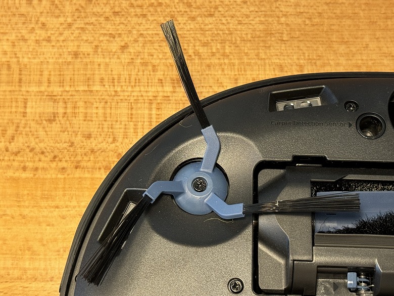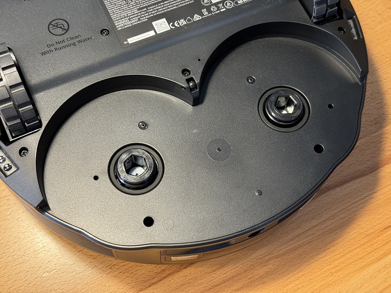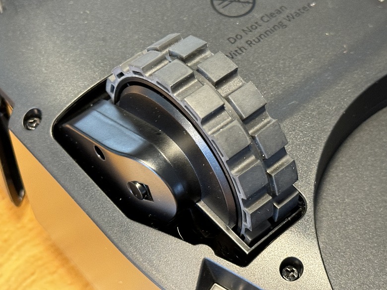 車輪は底面を下にして置くとロボット掃除機本体の中に沈みます。