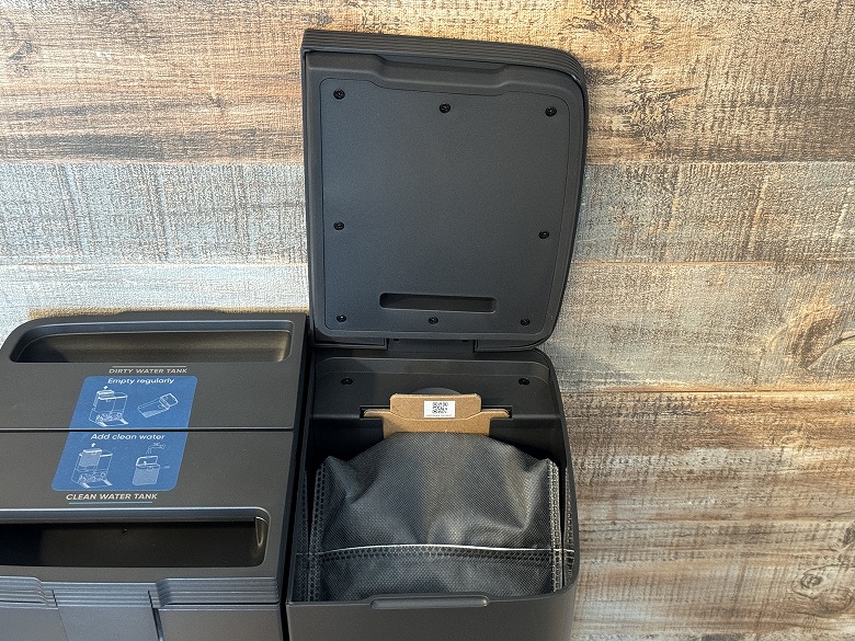 ダストバッグの左側の奥に汚水タンク、手前に浄水タンクがあります。