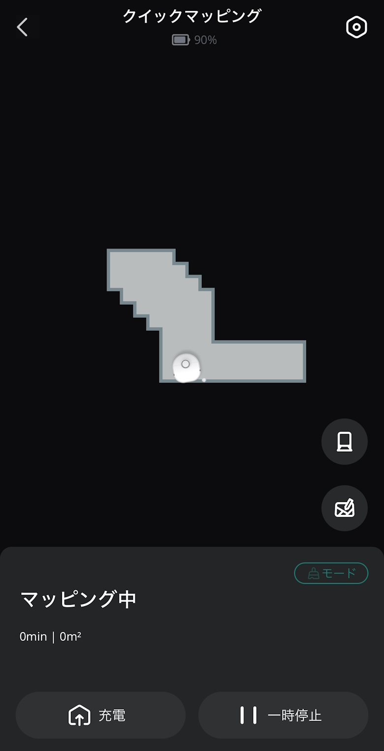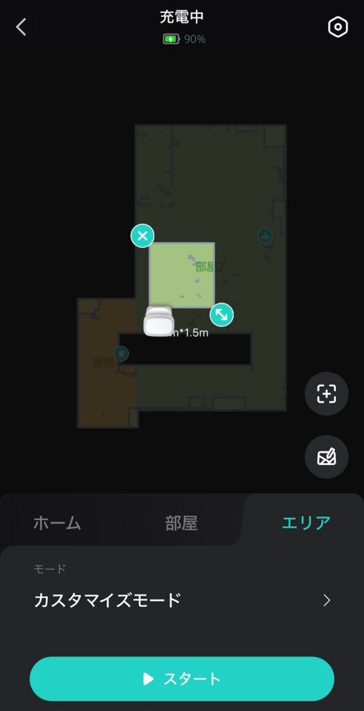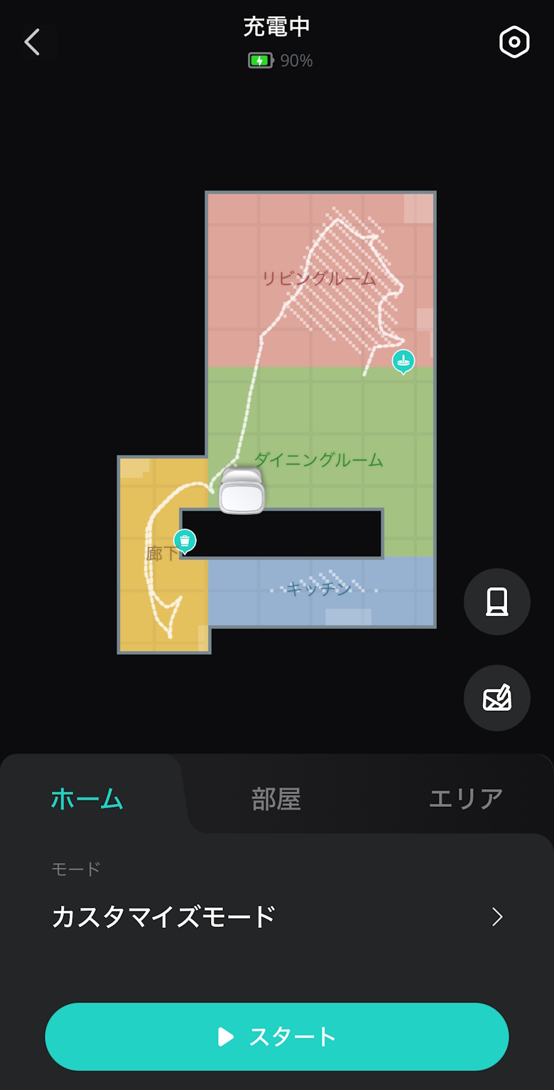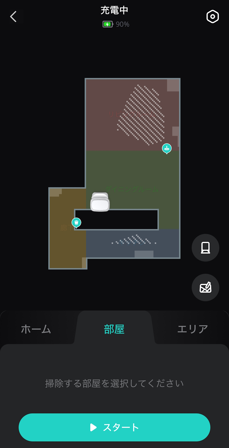掃除中はマップの中をロボット掃除機のアイコンが動きます。