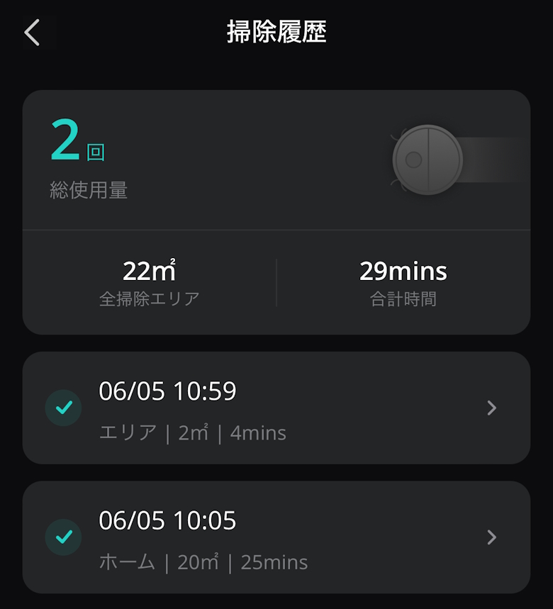掃除履歴を確認でき、ロボット掃除機の足跡を見ることができます。