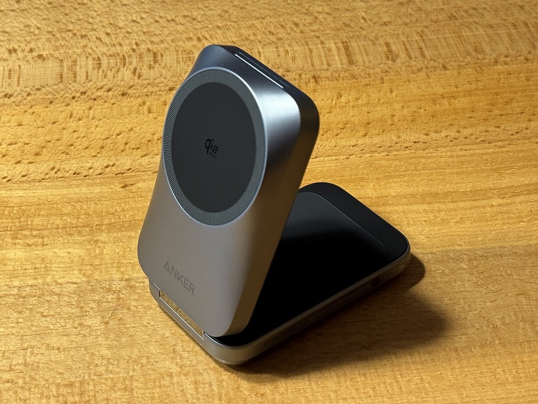Anker Prime Wireless Charging Station (3-in-1, MagGo, AirCool, Foldable)」は、Qi2対応のiPhoneに最大25W出力でワイヤレス充電が可能です。