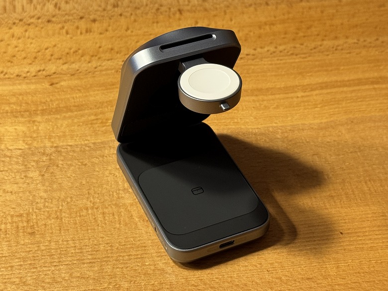 組み立てるとスタンド型になり、Apple Watch用の充電器は指でプッシュすると引き出すことができます。