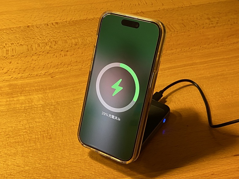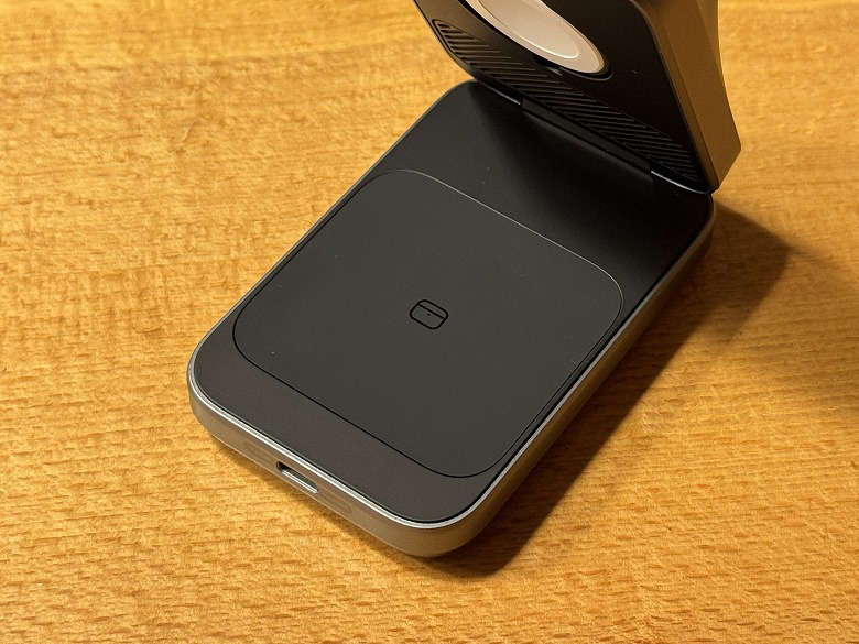 iPhoneなどのスマホを充電できるパッドはQi2に対応し、最大25W出力で充電できます。