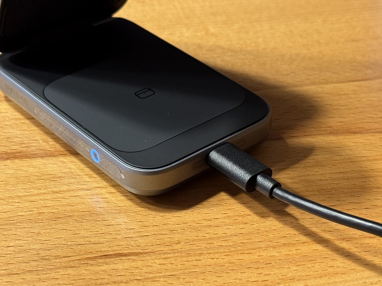 底面の側面にはUSB Type-Cポートがあり、電源と接続して給電します。